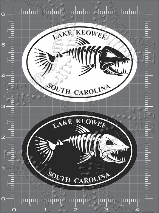 Lake Keowee, SC - Black and White Fishbonz Decal