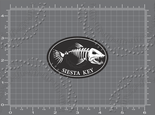 Siesta Keys, FL - Fishbonz Black Oval Decal