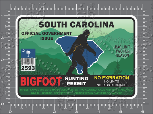 South Carolina - Bigfoot Hunting License Decal