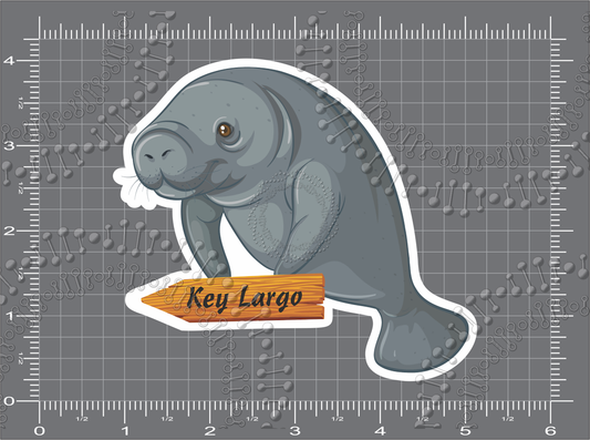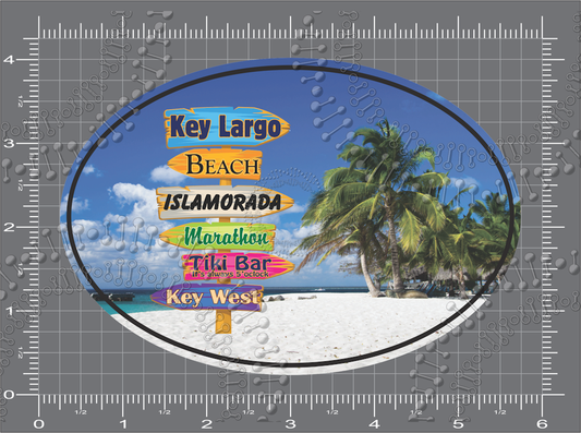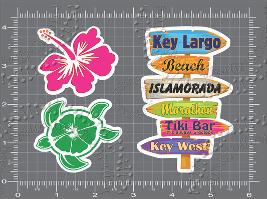 Key Largo, FL - Directional Sign with Turtle and Hibiscus Decal