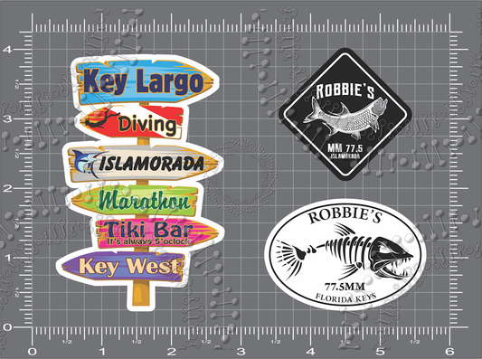Key Largo, FL - Directional Sign with Robbies Diamond Fish and White Fishbonz Decal