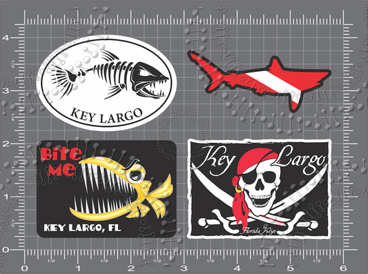 Key Largo, FL - Fishbonz, Dive Shark, Bite Me and Pirate Decal