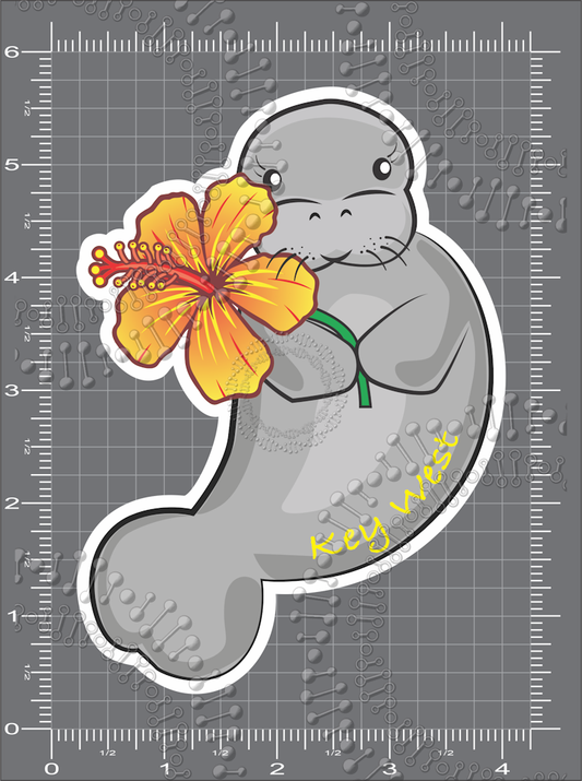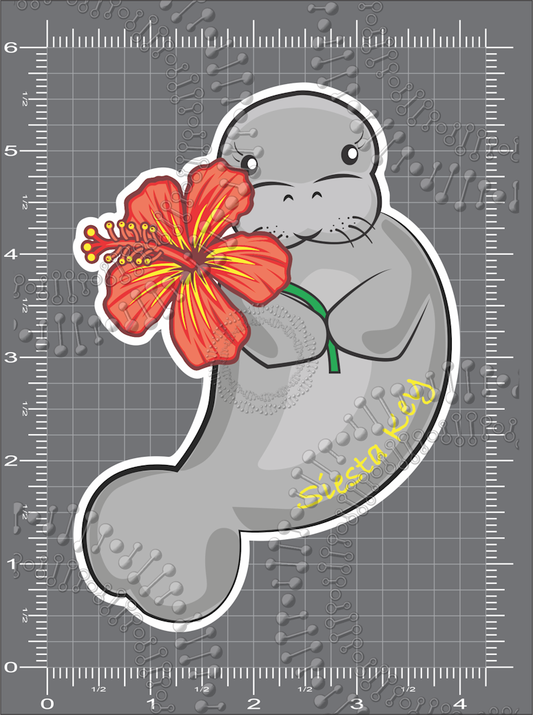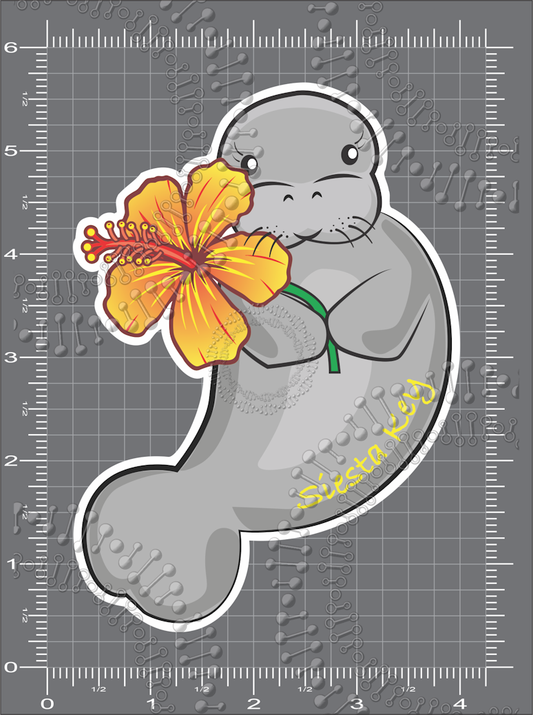 Siesta Key, FL - Manatee with Yellow Flower Decal
