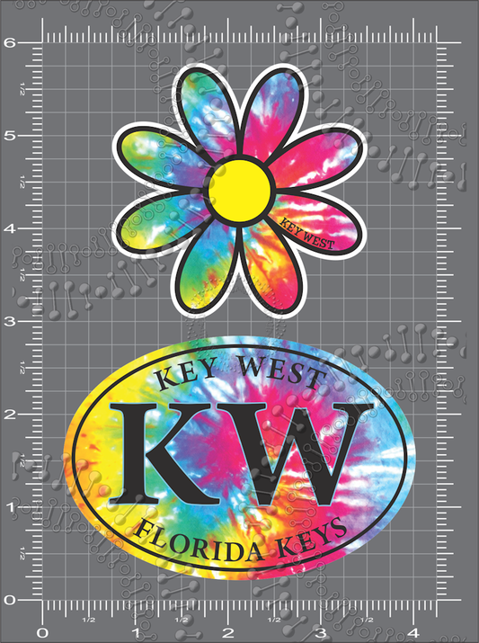 Key West, FL - Tie Dye Daisy and Oval Decal