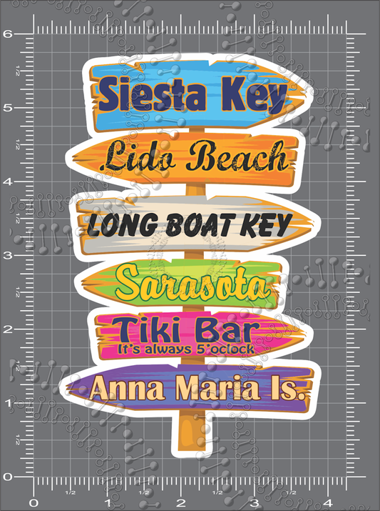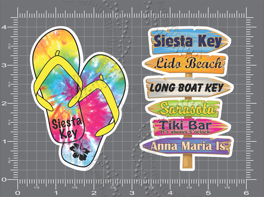 Siesta Key, FL - Directional Sign with Tie Dye Sandals Decal