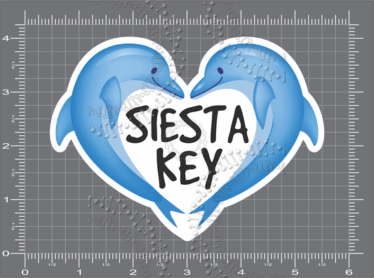 Siesta Key, FL - Directional Sign with Turtle, Hibiscus Decal