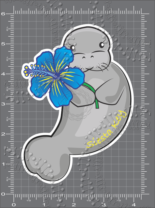 Siesta Key, FL - Manatee with Blue Flower Decal