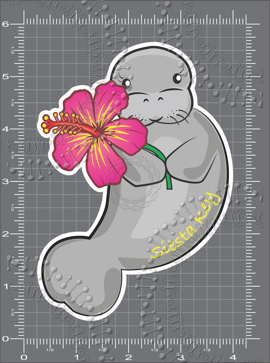 Siesta Key, FL - Manatee with Pink Flower Decal