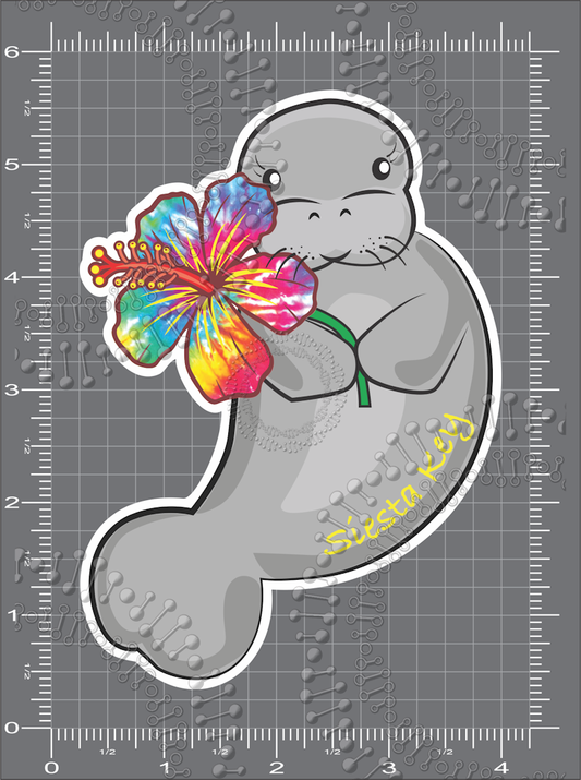 Siesta Key, FL - Manatee with Tie Dye Flower Decal