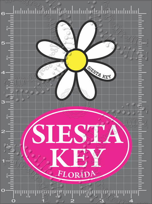 Siesta Key, FL - White Daisy with Pink Oval Decal
