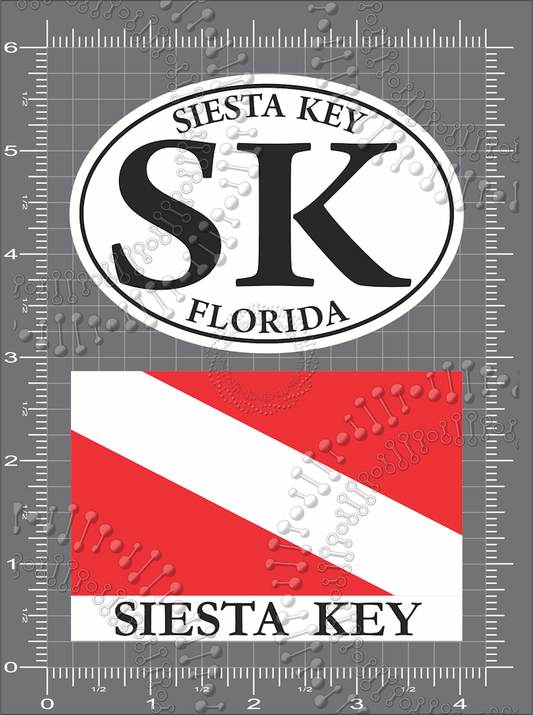 Siesta Key, FL - White SK Oval with Dive Flag Decal