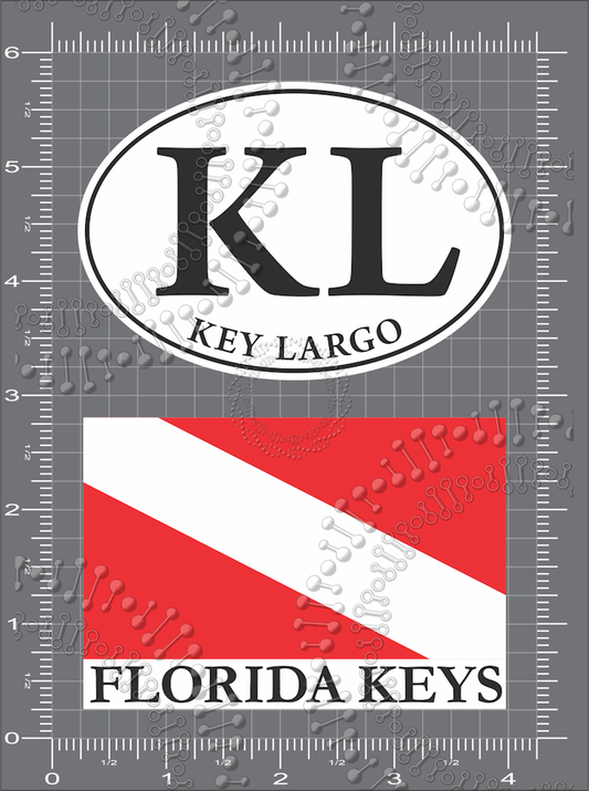 Key Largo, FL - KL White Oval and Florida Keys Dive Flag Decal