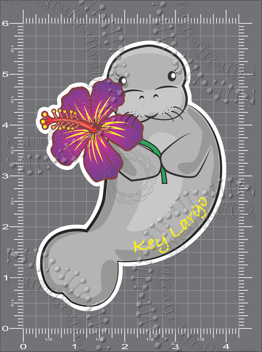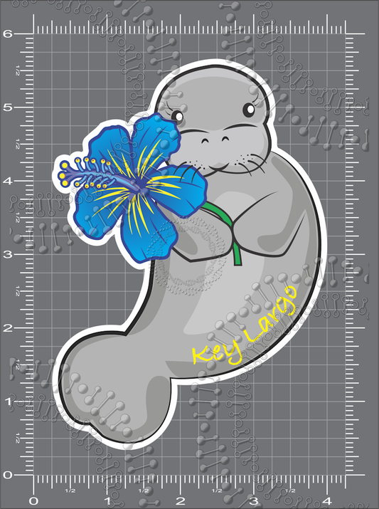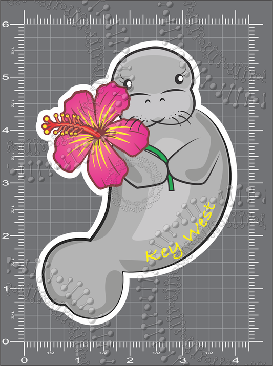 Key Largo, FL - Manatee with Yellow Flower Decal