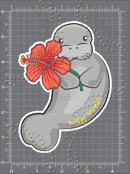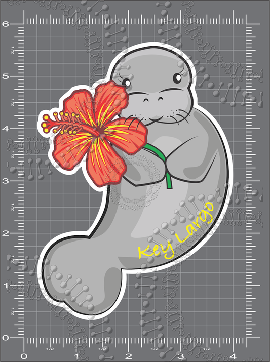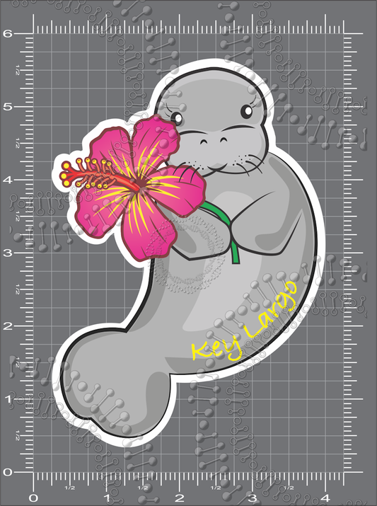 Key Largo, FL - Manatee witrh Orange Flower Decal