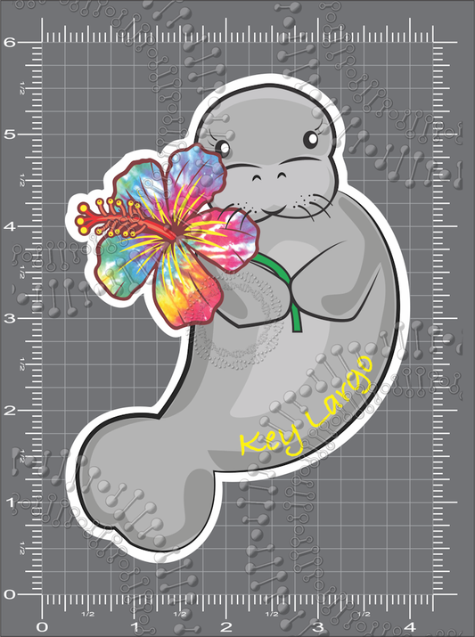 Key Largo, FL - Manatee with Tie Dye Flower Decal