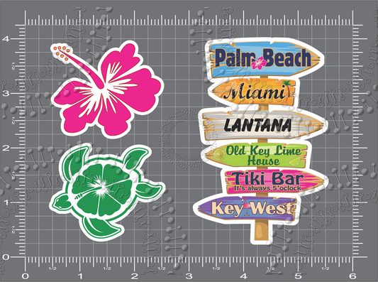 Palm Beach, FL - Directional Sign with Turtle, Hibiscus Decal