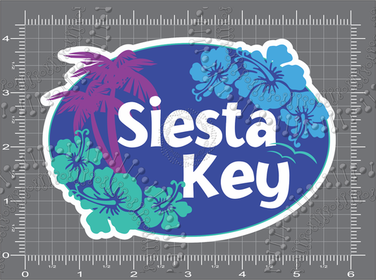Siesta Key, FL - Siest Key with Pink Hibiscus Decal