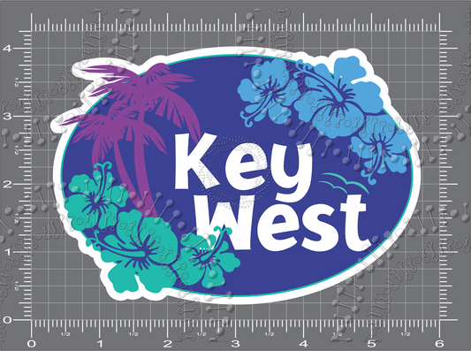 Key West, FL - KW with Hibiscus Decal