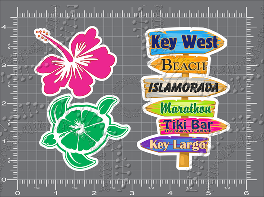 Key West, FL - Directional Sign with Turtle and Hibiscus Decal