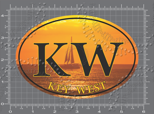 Key West, FL - KW White Oval Decal