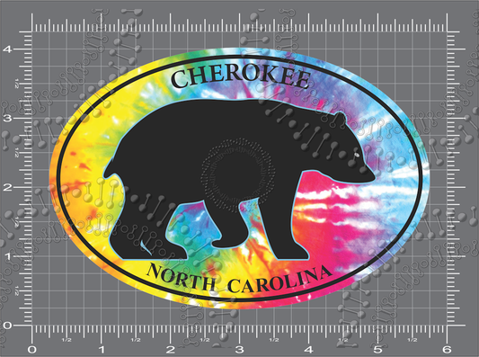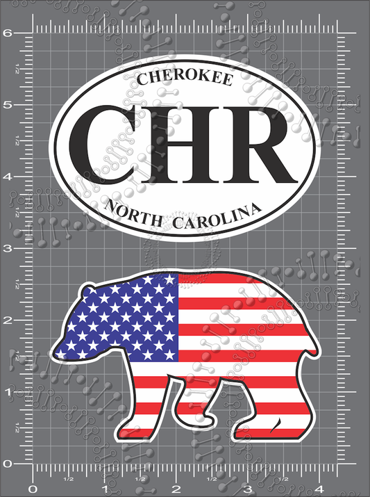 Cherokee, NC - USA Bear and White CHR Oval Decal