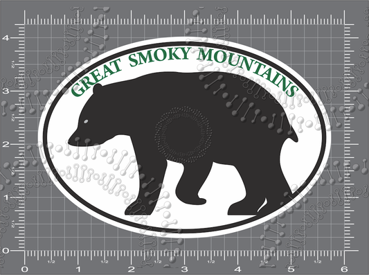 Great Smoky Mountains, NC - Bear with Green Text Decal