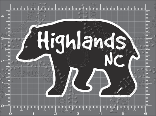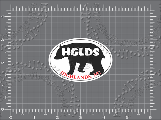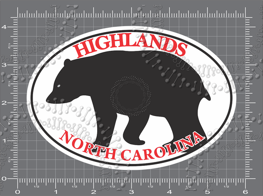Highlands, NC - HGLDS White Oval and Highlands Black Bear Decal