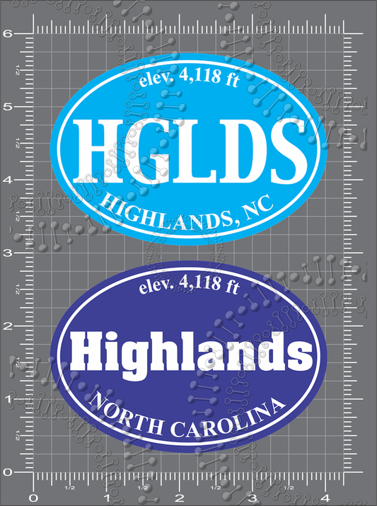 Highlands, NC - Cyan HGLDS and Blue Highlands with Elevation Decal