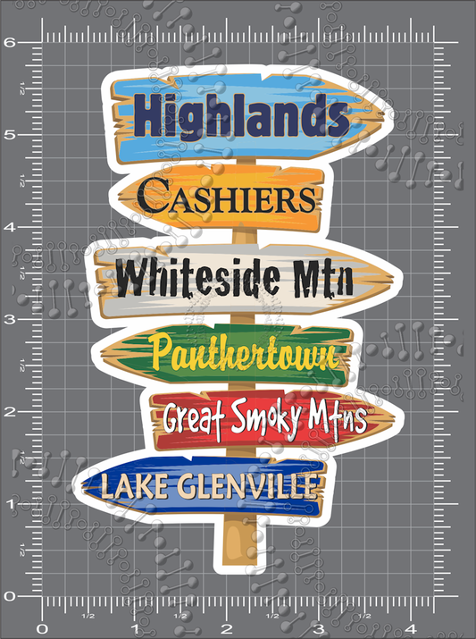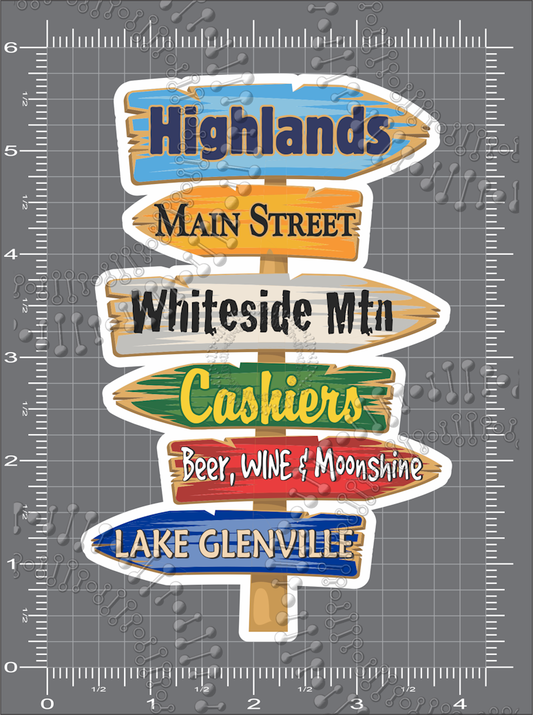 Highlands, NC - Directional Sign Decal