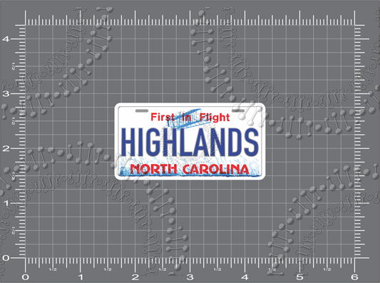 Highlands, NC - First In Flight License Plate Decal