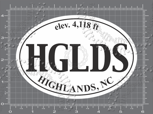 Highlands, NC - HGLDS White Oval Decal
