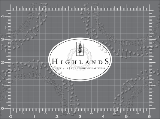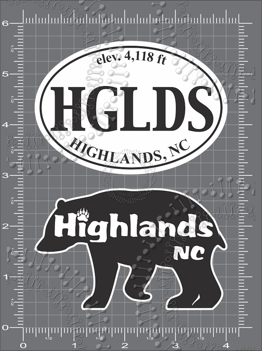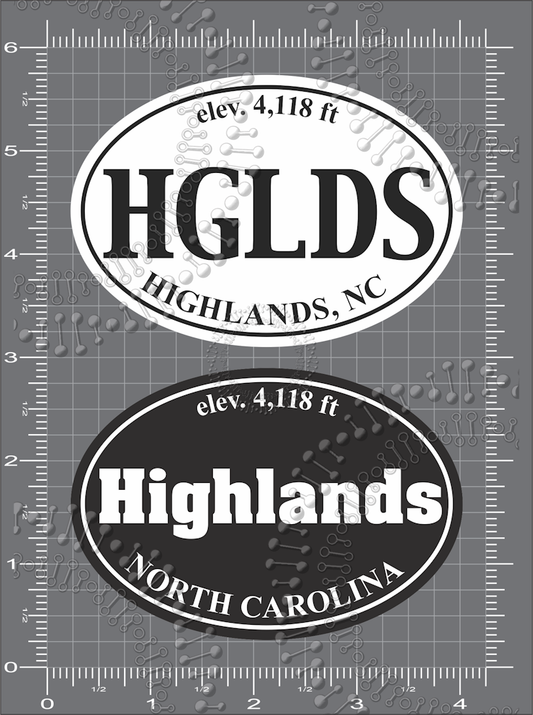 Highlands, NC - White HGLDS and Black Highlands Decal