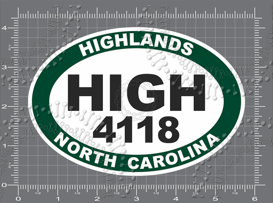 Highlands, NC - HIGH Elevation 4118 Decal