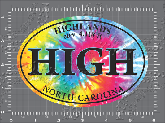Highlands, NC - HIGH with Elevation Tie Dye Decal