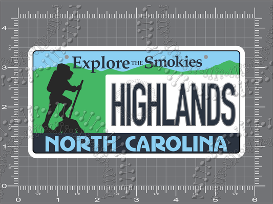 Highlands, NC - Hiker License Plate Decal
