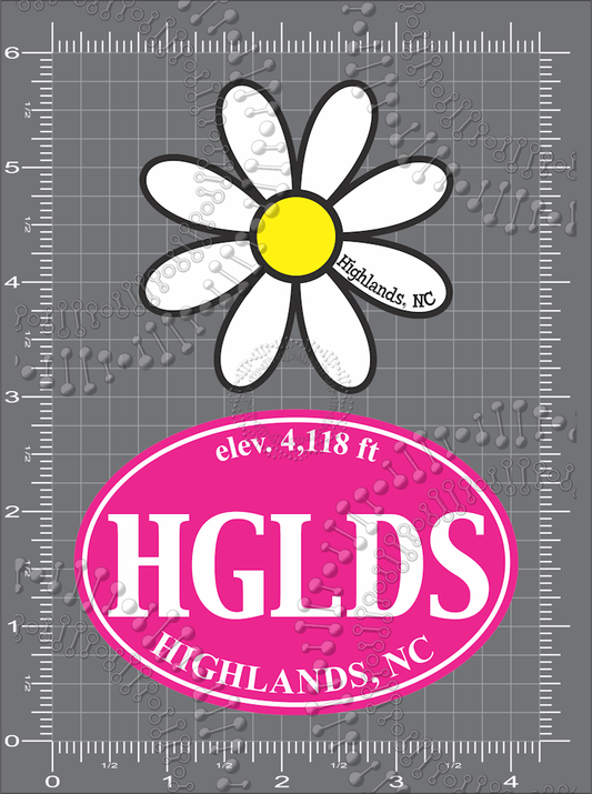 Highlands, NC - Pink HGLDS Oval and White Daisy Decal