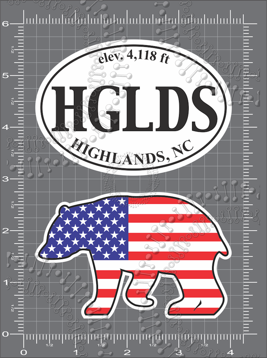 Highlands, NC - White HGLDS and USA Bear Decal
