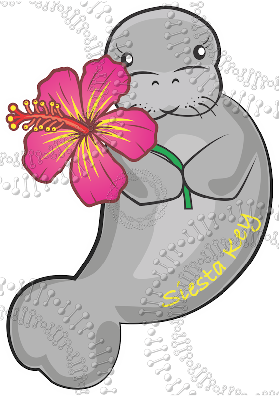 Siesta Key, FL - Manatee with Pink Flower Decal